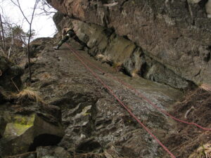 Skaly tvoriace vrchol kopca sú tvoria skupinu veží a žľabov v strmom zráze. Prístup pod „steny“ je z vrcholu ešte nevychodenou zostupovkou zo západnej strany. Skaly sú z andezitu, v niektorých miestach značne lámavého zväčša zarasteného lišajníkmi.